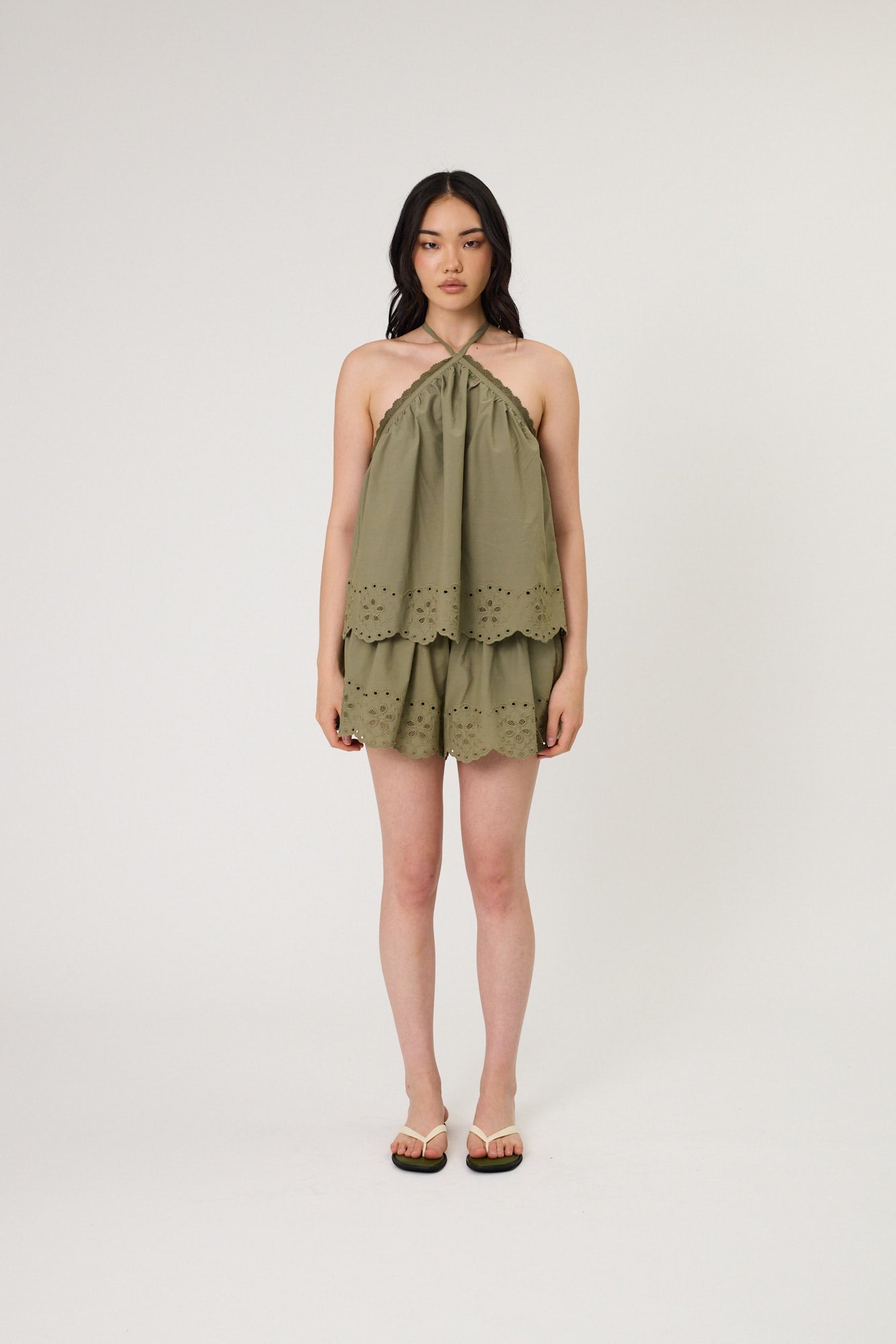 • 100% Cotton• Halter Neck• Broderie Detail• Gathered Seam• Model is 175cm and wearing a size 8