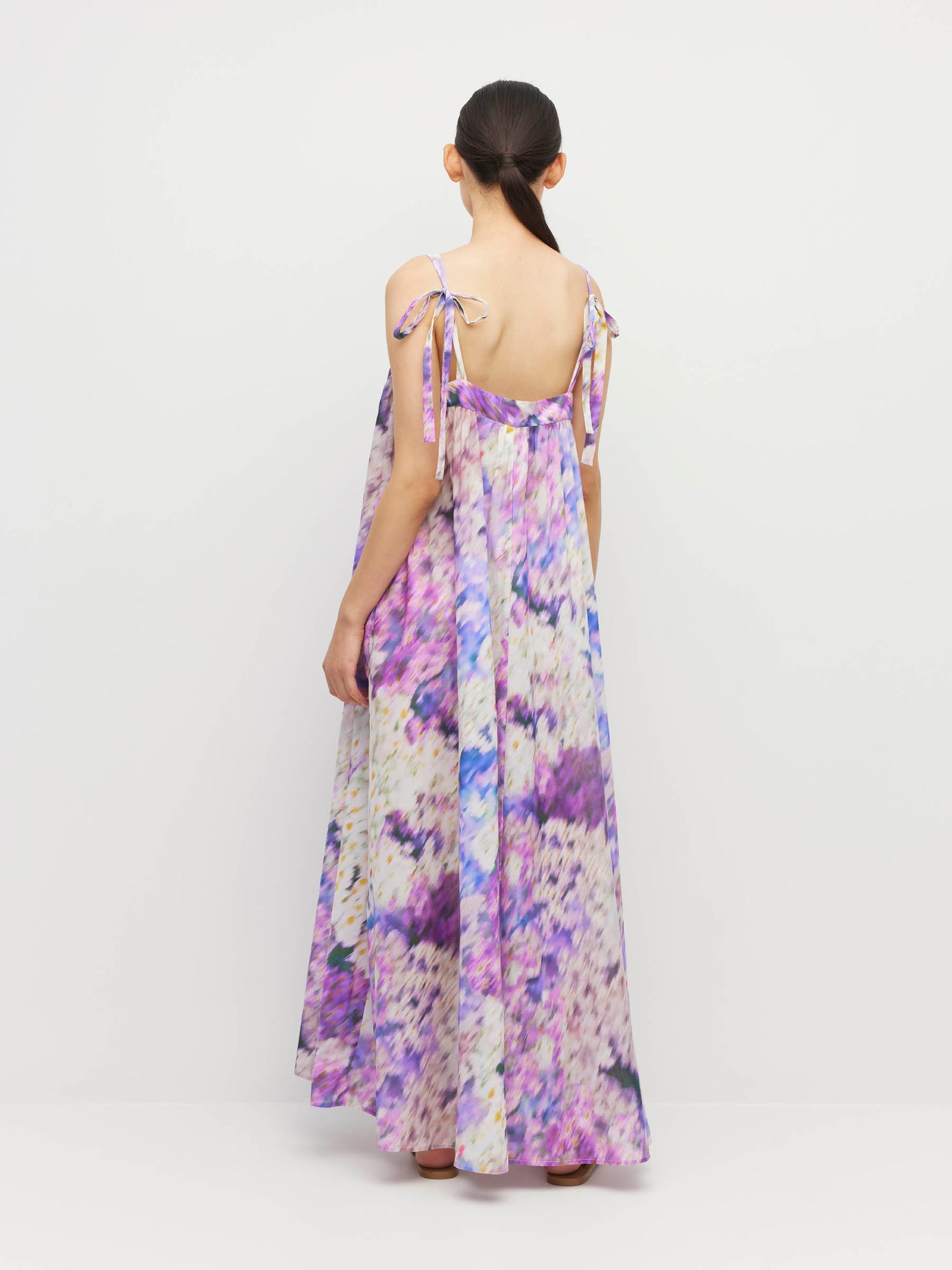 The Emmeline Dress is a relaxed full-length sundress, featuring adjustable shoulder ties and a free-flowing body. Our custom Lavender Mist Cotton is light and breathable, perfect for the summer months.