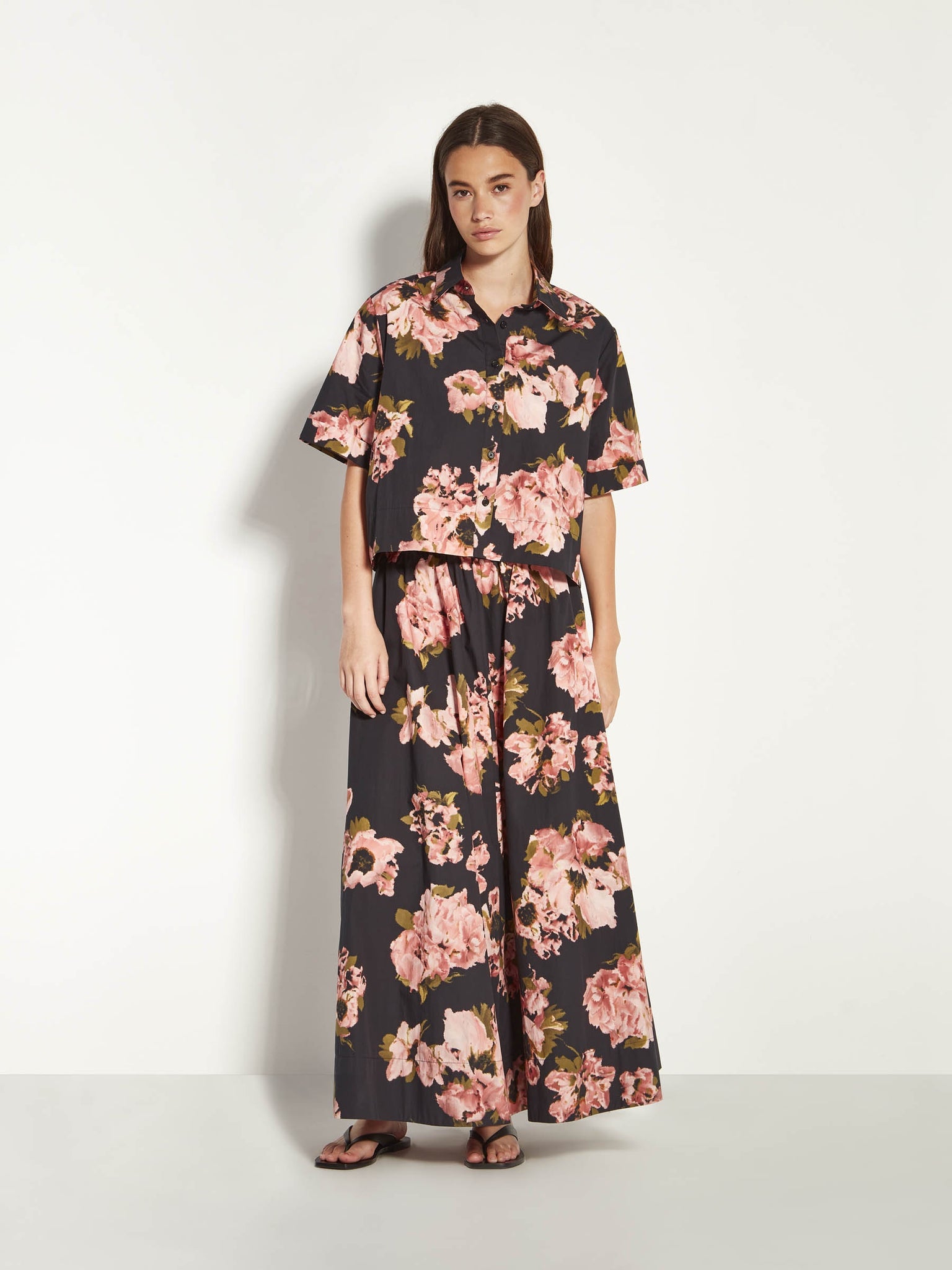 A JH favourite now made in our Ruffled Tulips Cotton, the Everly Shirt is a cropped shirt style that is an easy summer option. Featuring a short sleeve, structured collar and an exposed button placket, this style can easily be worn open over a tank or buttoned up for a boxy look.