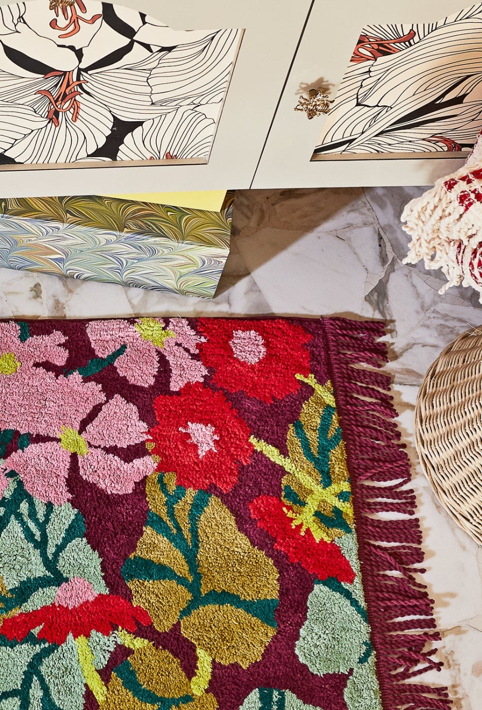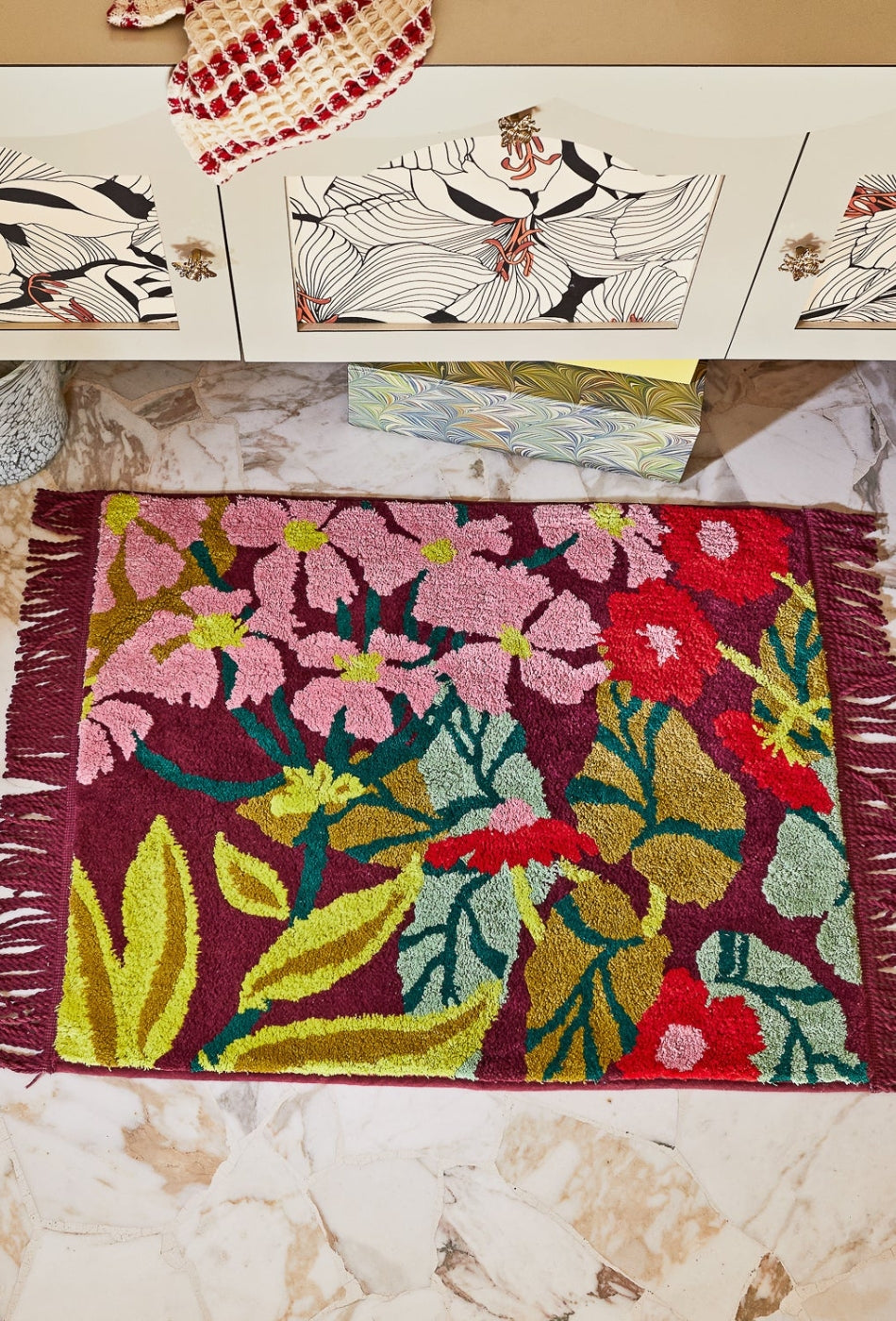 - Measures 80 x 60cm + fringe.