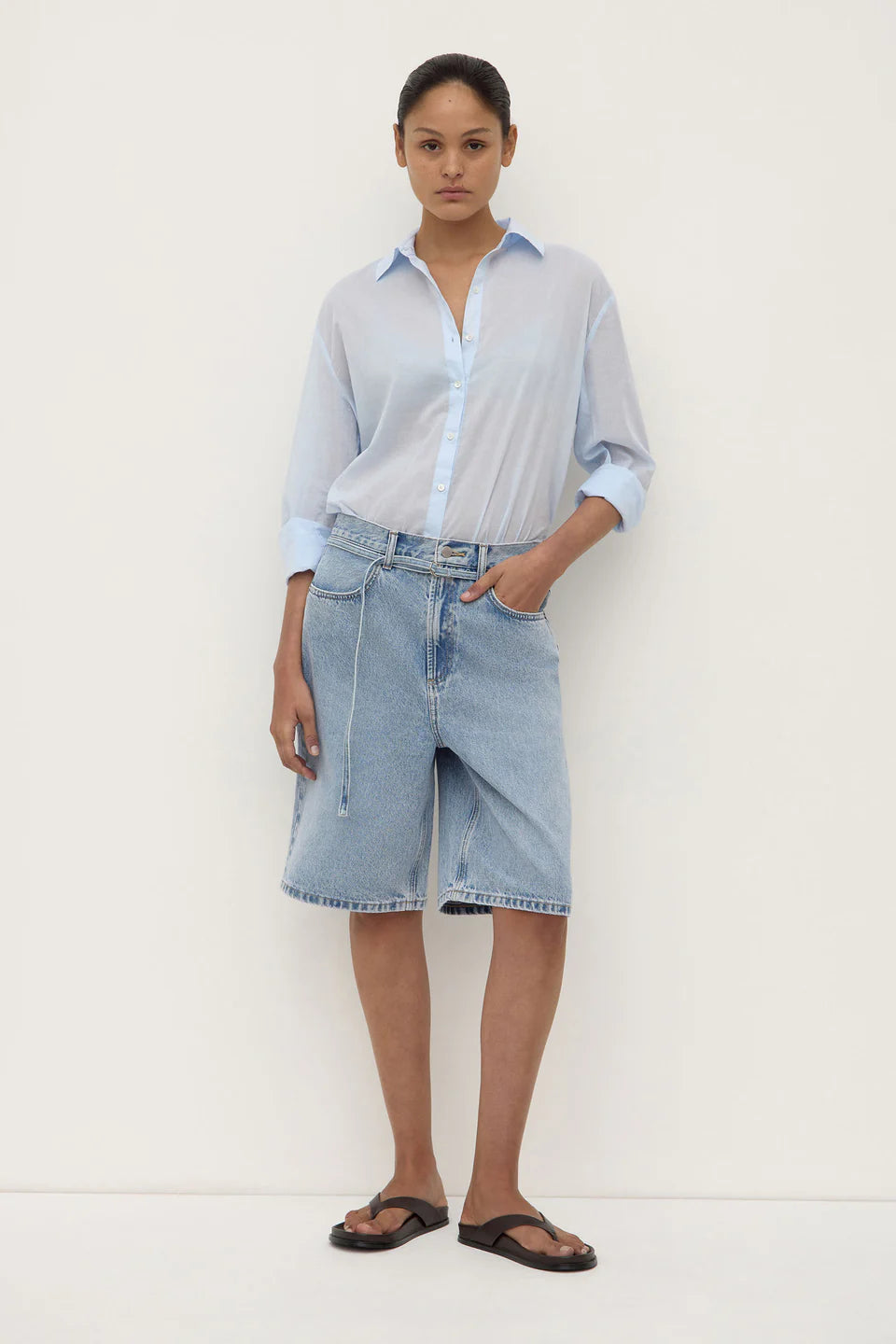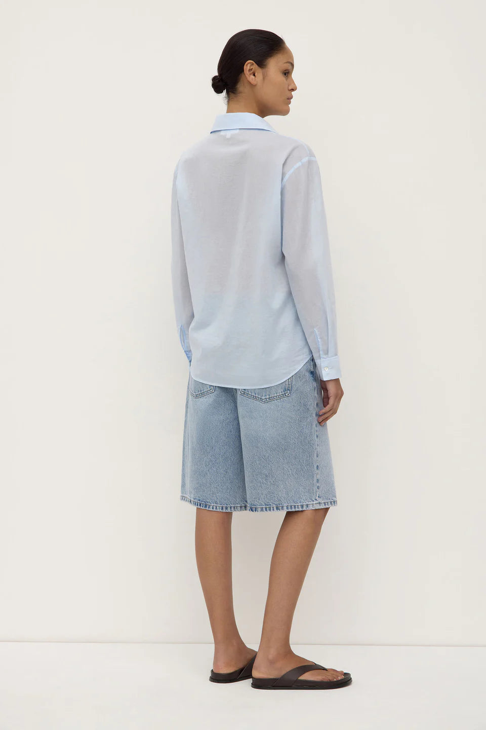 Made for layering, this shirt is crafted from a lightweight semi-sheer cotton. Features a shaped hemline with button cuffs that can be styled rolled for a more relaxed look.