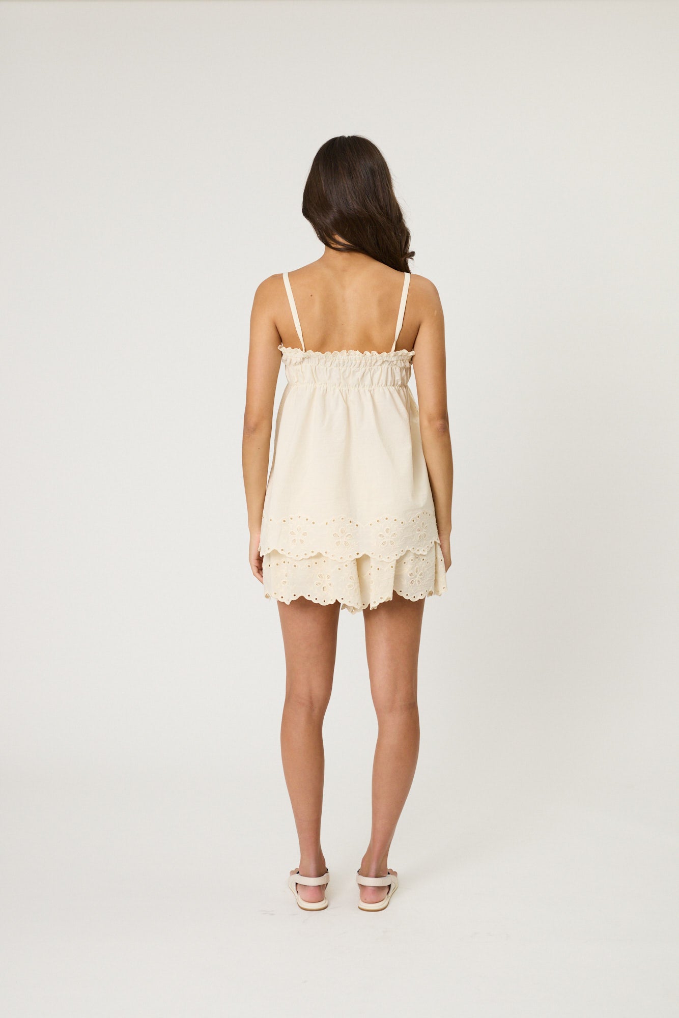 Crafted from delicate broderie fabric, the Leilani cami is a must-have summer piece. Pair with the matching Leilani shorts for the perfect co-ord ensemble.