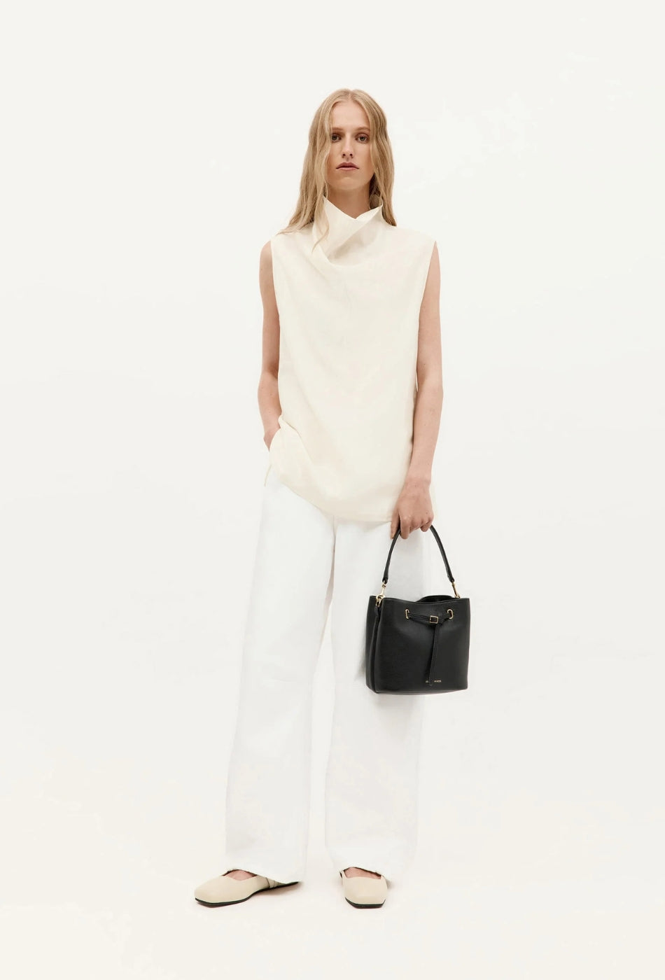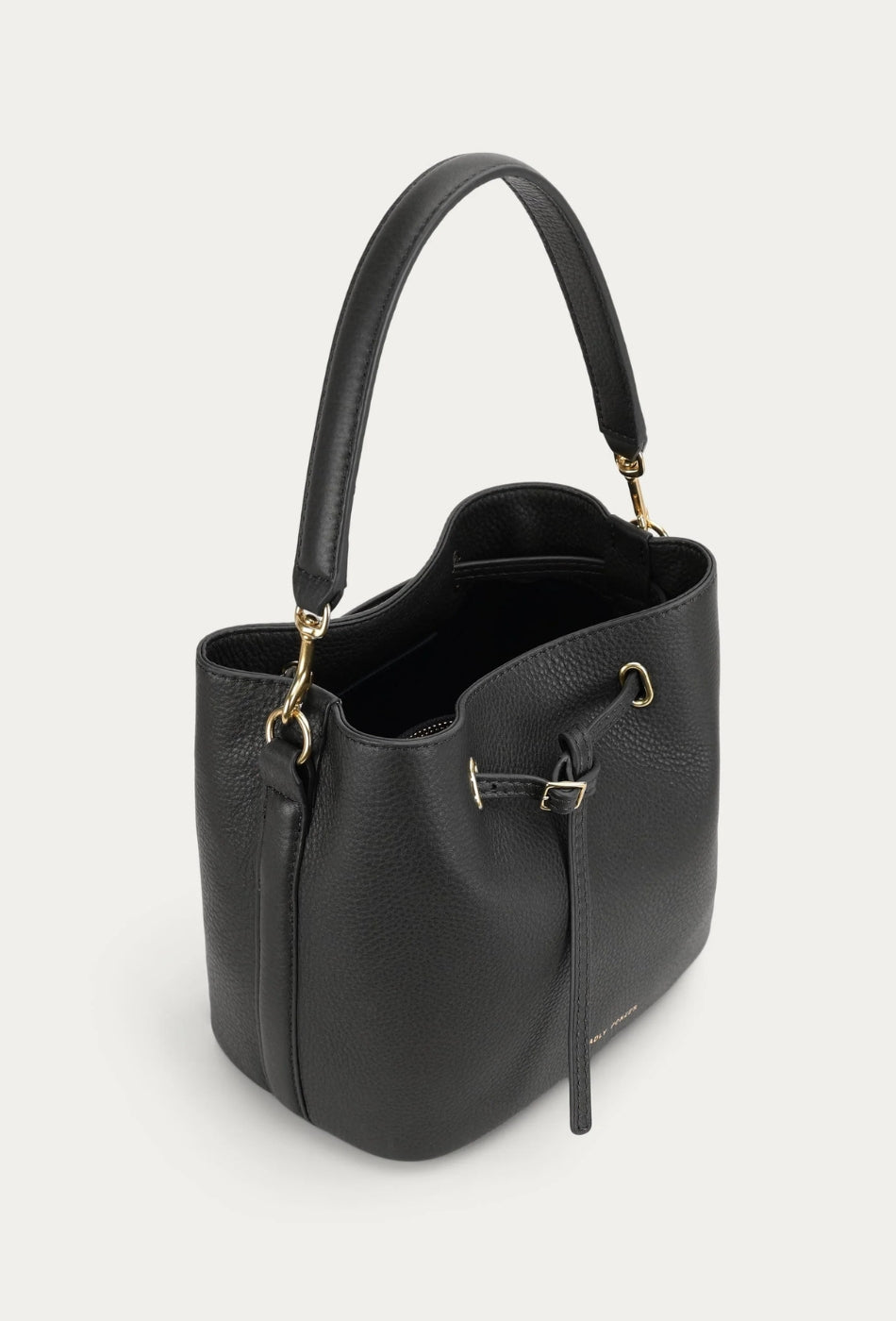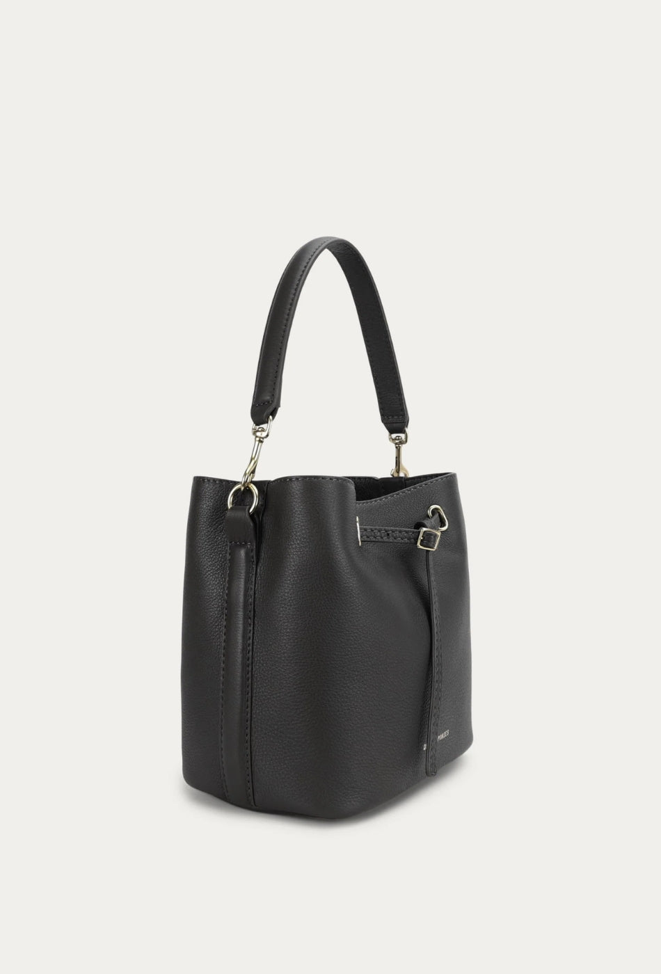Mr Penny in Black reimagines the classic bucket bag in supple Calf Nappa, finished with solid brass hardware. He features leather detailing threaded through brass eyelets, a detachable top handle, an adjustable strap, and a removable cotton pouch.