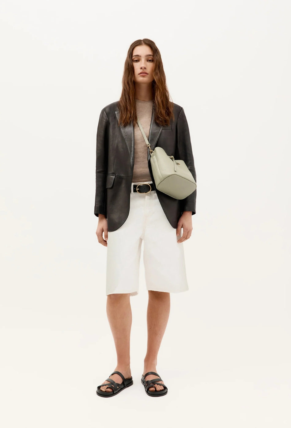 Mr Penny in Kina reimagines the classic bucket bag in supple Calf Nappa, finished with solid brass hardware. He features leather detailing threaded through brass eyelets, a detachable top handle, an adjustable strap, and a removable cotton pouch.