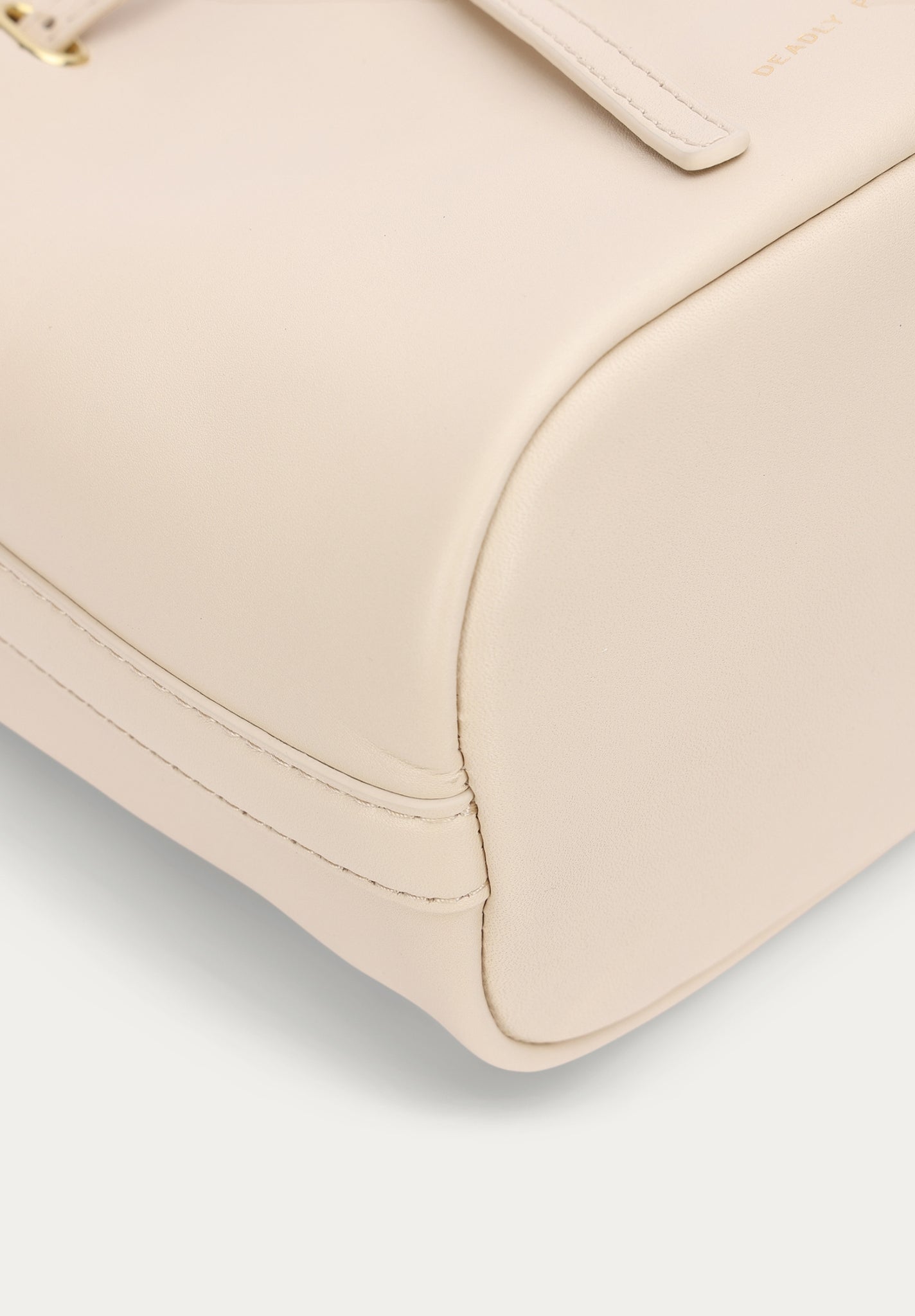 The Deadly Ponies Mr Penny in Porcelain reimagines the classic bucket bag in supple LWG-certified Ironed Calf Nappa with solid brass hardware. Featuring leather detailing threaded through brass eyelets, a detachable top handle, adjustable strap, and a removable cotton pouch.