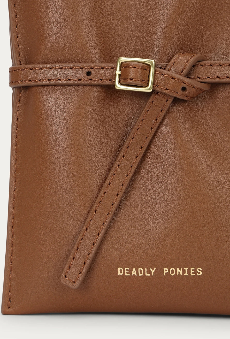 Leather strap with buckle detail at front.