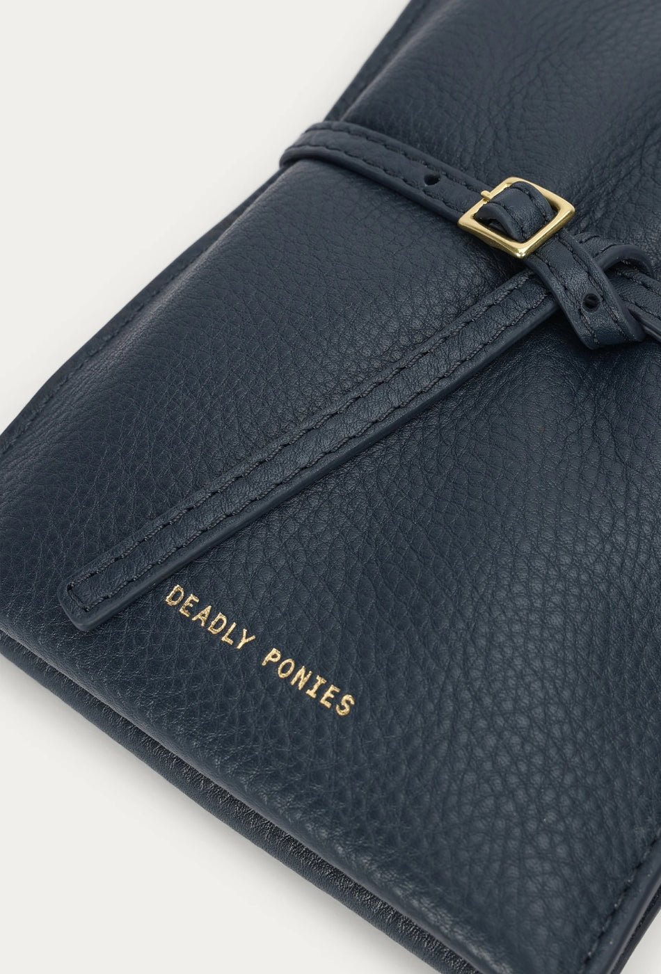 Crafted from buttery-soft Calf Nappa, Mr Penny Pouchette in Ink features a compact silhouette with leather strap detailing and a front buckle accent. A detachable strap offers versatile styling, while a back slip pocket keeps essentials within easy reach.