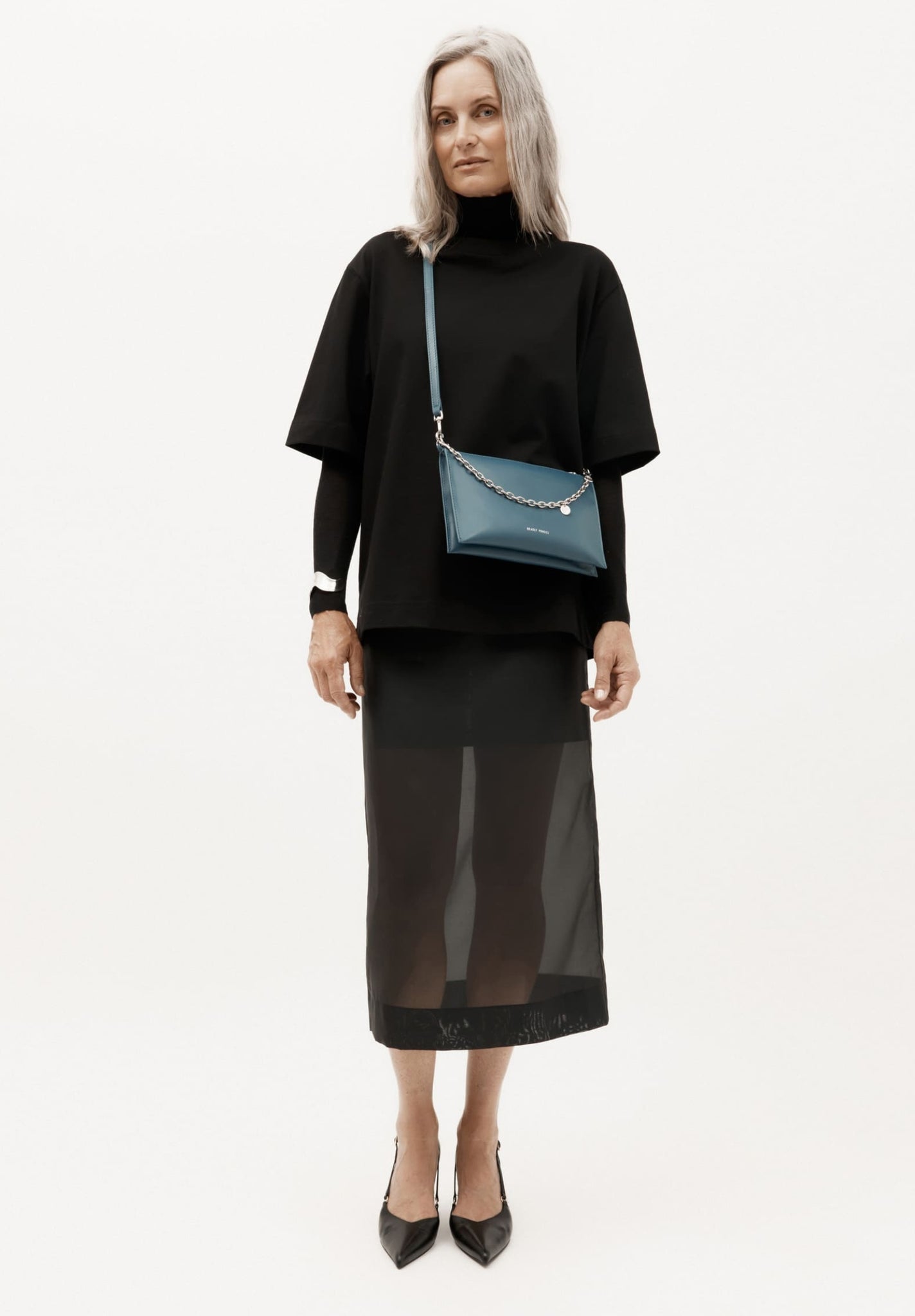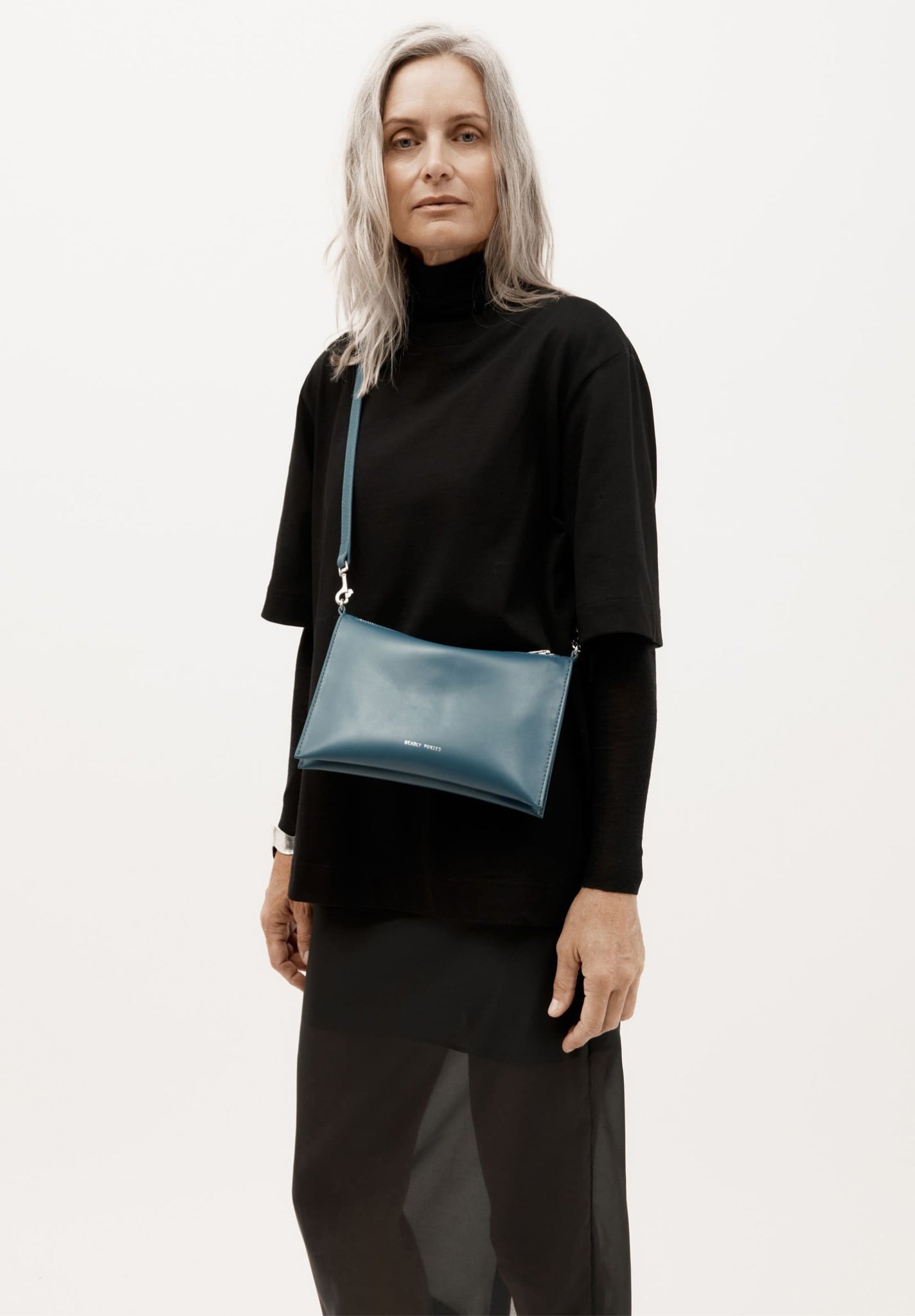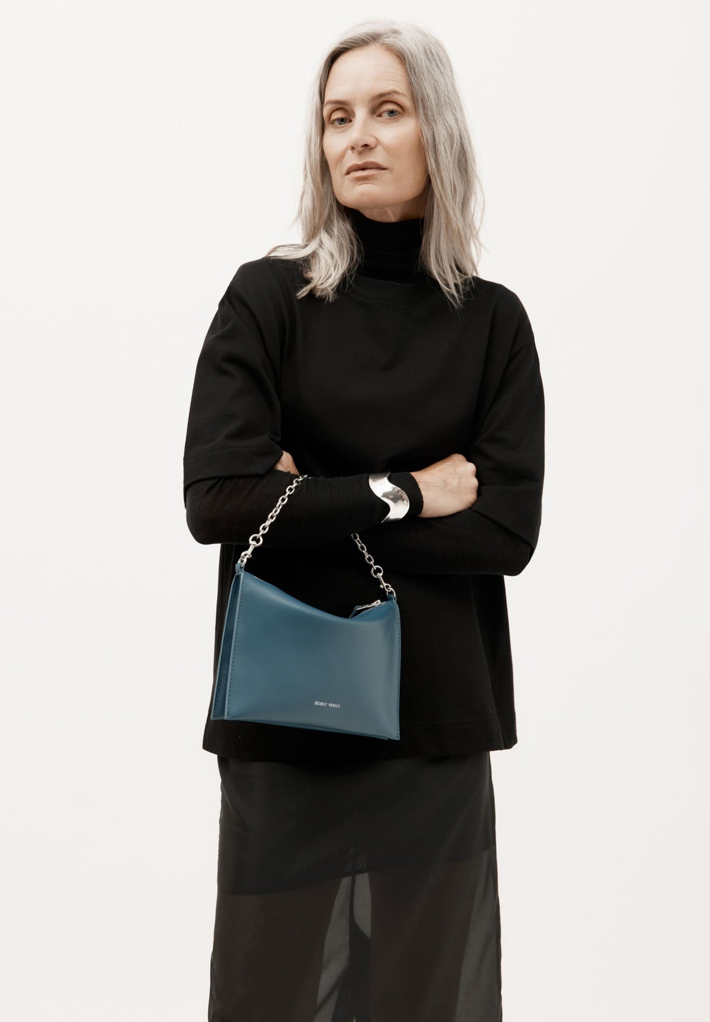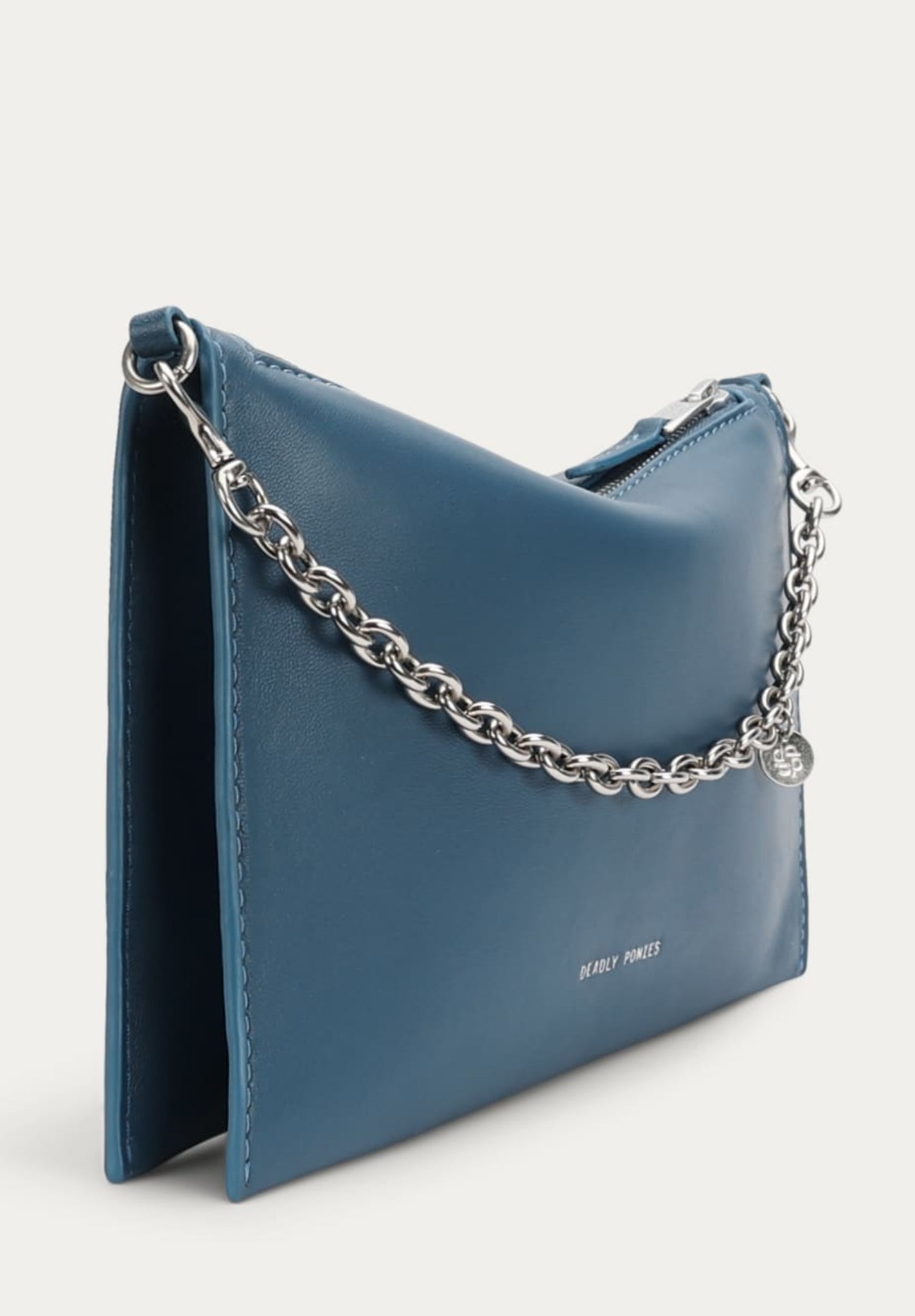 Crafted from a single piece of LWG-certified Lamb Nappa in Dusk, Mr Siamese is defined by his streamlined silhouette. With a detachable silver finish solid brass chain and adjustable strap, he transitions seamlessly from clutch to shoulder or crossbody wear.