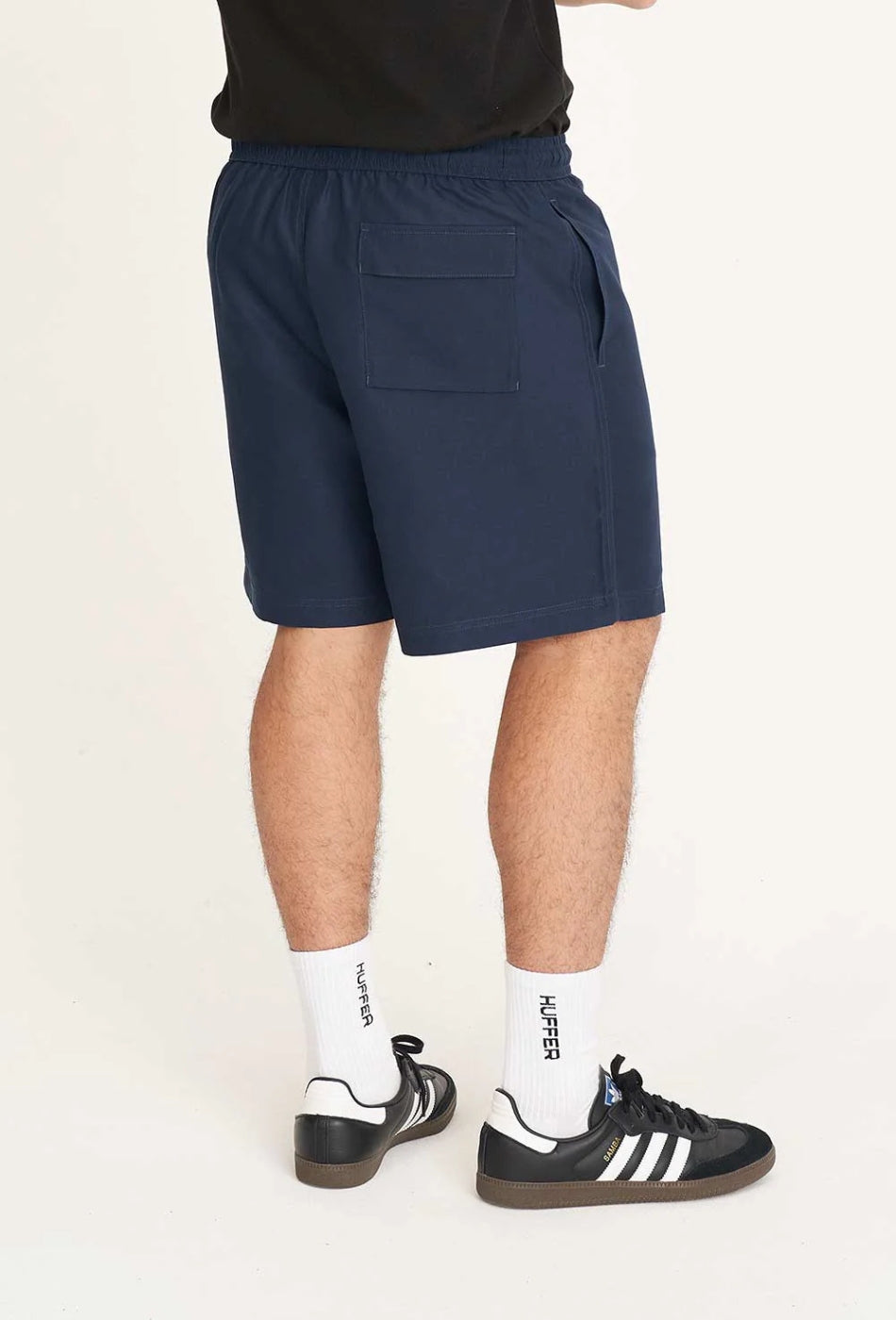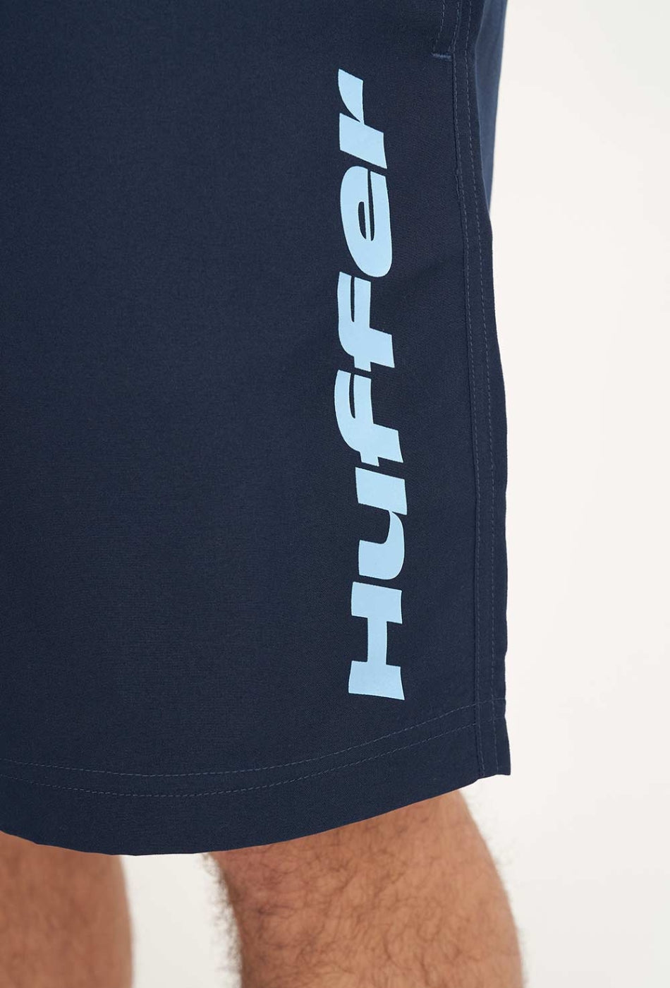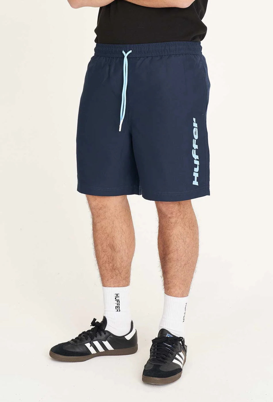 • What you need to know: 100% Polyester microfibre, quick dry, mechanical stretch, classic streetwear fit, 3 pocket detail, elasticated waistband with drawcord and Huffer branded placement print.