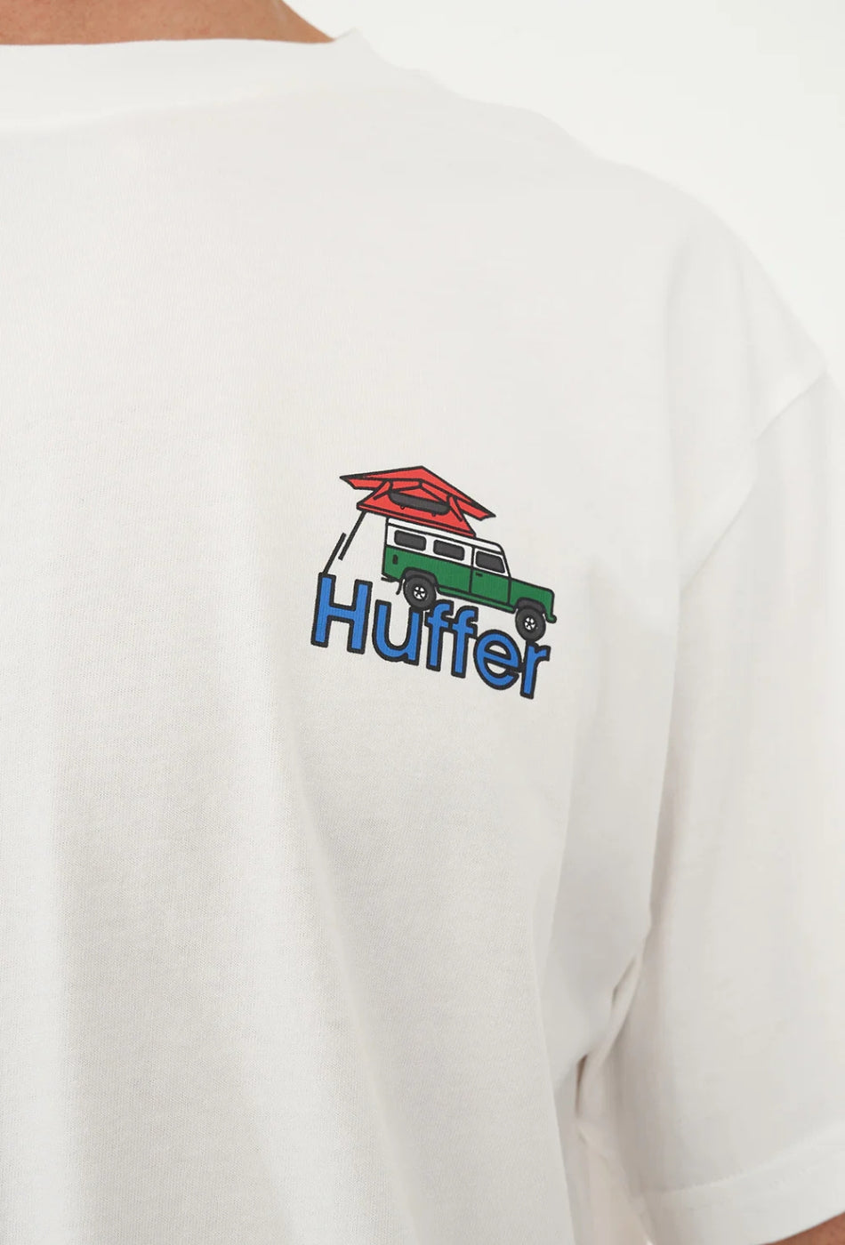 • What you need to know: 100% Cotton, 190gsm, 20mm Neck rib, Classic streetwear fit, Short sleeve, Huffer branded screenprint.