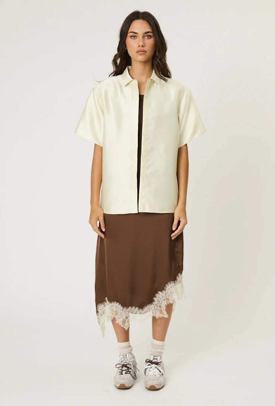 Elevate any workday look with the Sutton Shirt. A short sleeve button up with a boxy fit that makes it ideal for layering over tees and tanks or on its own paired back with the Sutton Shorts for the perfect co-ord look.