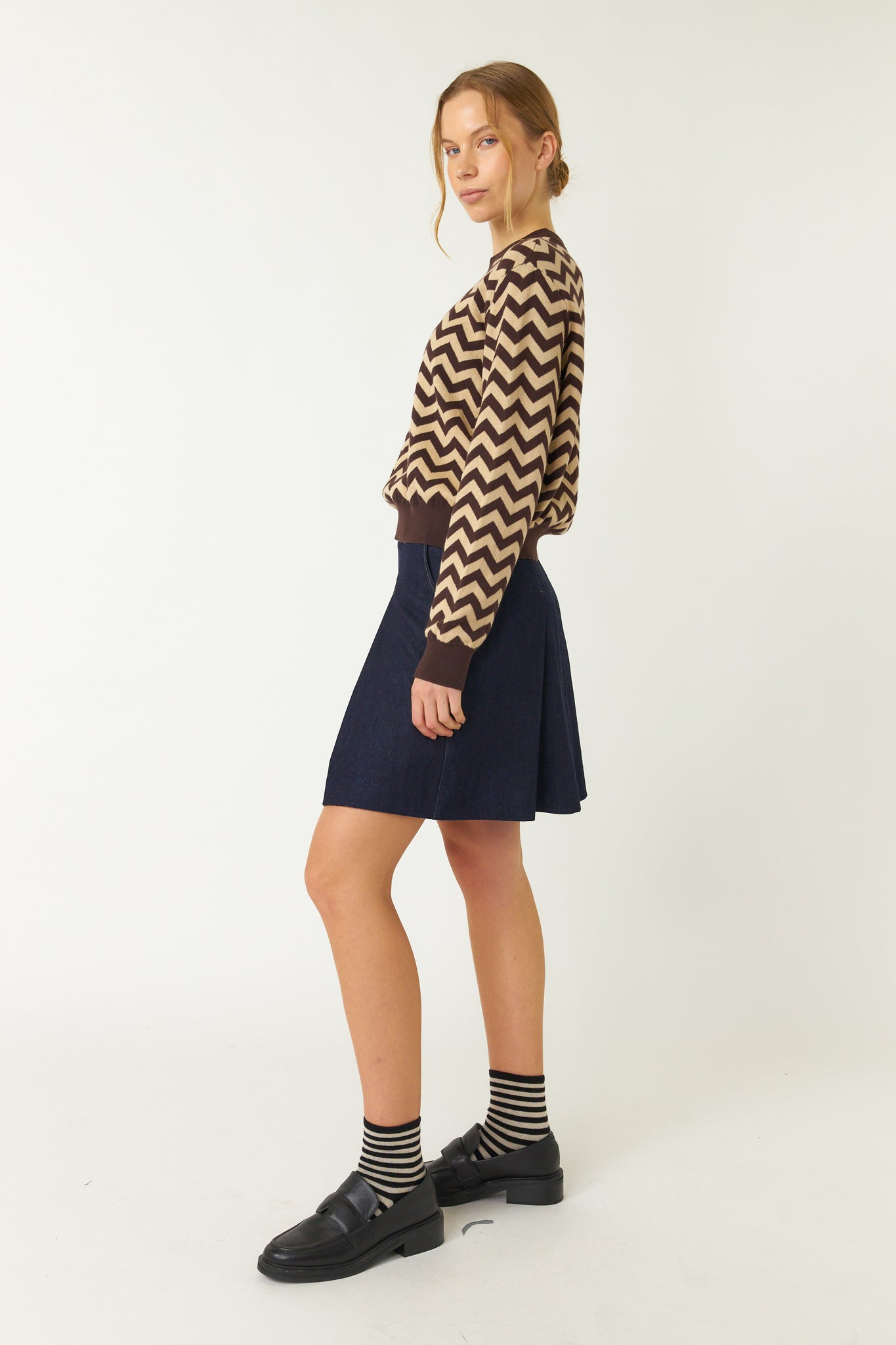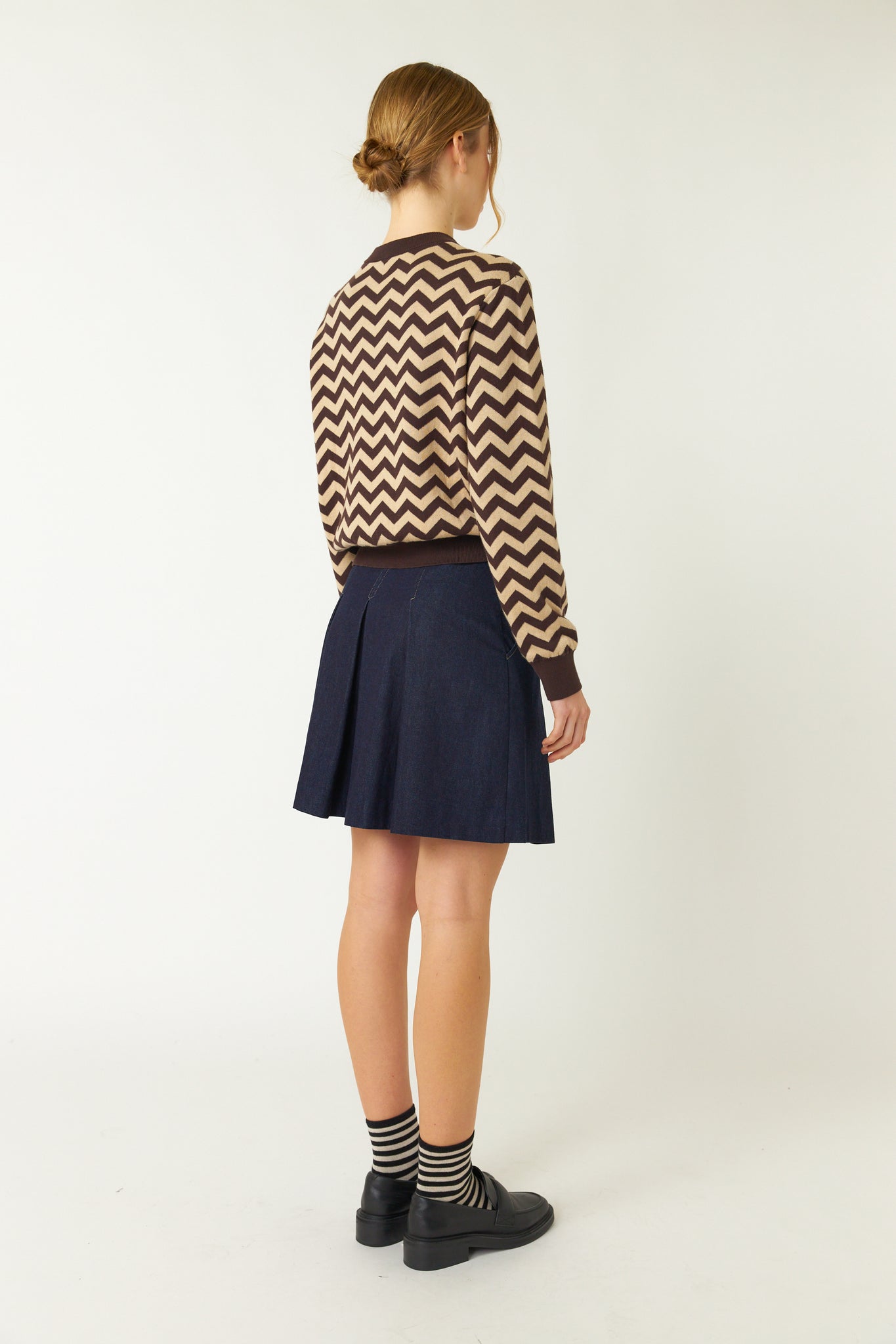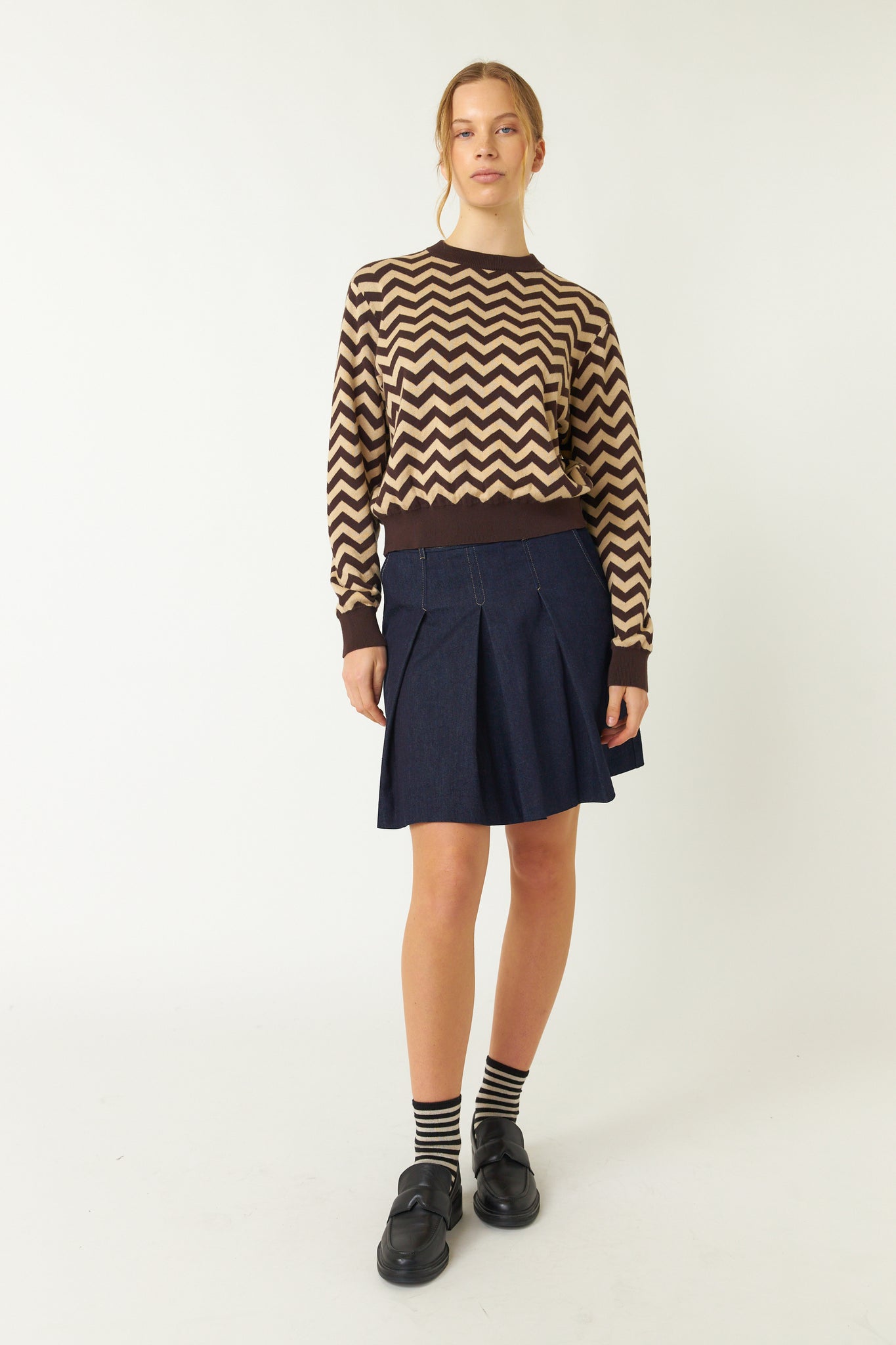 The Twin Peaks jumper features a unique jacquard zig-zag design. It’s a slouchy fit with rib detailing at the neck, cuffs and hem.