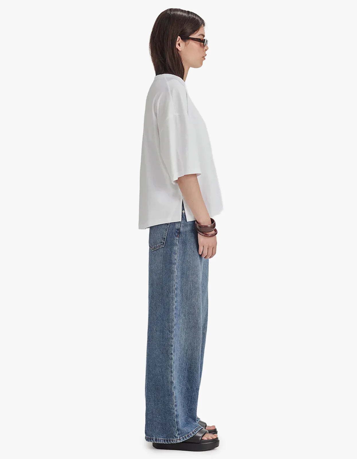 With a heavyweight feel and an easy, relaxed shape, this tee is cut from premium 300gsm pigment-dyed cotton jersey for structure and comfort. Dropped sleeves, side splits, and a scooped back hem add movement and form, while the bound neckline gives a refined finish.